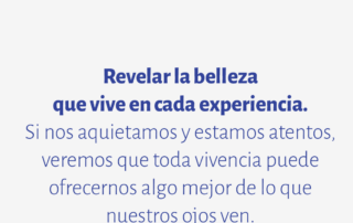 Revelar la belleza que vive en cada experiencia. Si nos aquietamos y estamos atentos, veremos que toda vivencia puede ofrecernos algo mejor de lo que nuestros ojos ven.