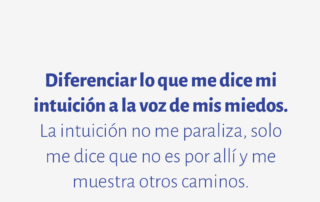 Diferenciar lo que me dice mi intuición a la voz de mis miedos. La intuición no me paraliza, solo me dice que no es por allí y me muestra otros caminos.
