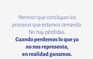 Permitir que concluyan los procesos que estamos cerrando. No hay pérdidas. Cuando perdemos lo que ya no nos representa, en realidad ganamos.