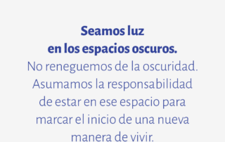Seamos luz en los espacios oscuros. No reneguemos de la oscuridad. Asumamos la responsabilidad de estar en ese espacio para marcar el inicio de una nueva manera de vivir.