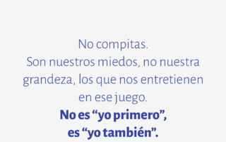 No compitas. Son nuestros miedos, no nuestra grandeza, los que nos entretienen en ese juego. No es “yo primero”, es “yo también”.