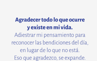 Agradecer todo lo que ocurre y existe en mi vida. Adiestrar mi pensamiento para reconocer las bendiciones del día, en lugar de lo que no está. Eso que agradezco, se expande.