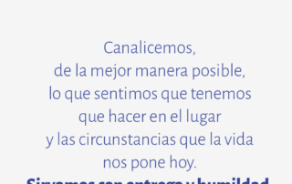 Canalicemos, de la mejor manera posible, lo que sentimos que tenemos que hacer en el lugar y las circunstancias que la vida nos pone hoy. Sirvamos con entrega y humildad.