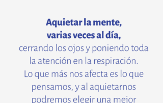 Aquietar la mente, varias veces al día, cerrando los ojos y poniendo toda la atención en la respiración. Lo que más nos afecta es lo que pensamos, y al aquietarnos podremos elegir una mejor manera de vivirlo.