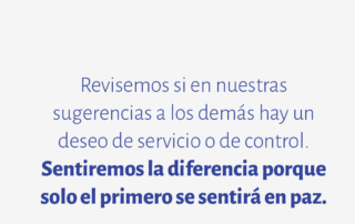 Revisemos si en nuestras sugerencias a los demás hay un deseo de servicio o de control. Sentiremos la diferencia porque solo el primero se sentirá en paz.