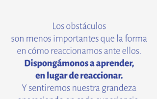 Los obstáculos son menos importantes que la forma en cómo reaccionamos ante ellos. Dispongámonos a aprender, en lugar de reaccionar. Y sentiremos nuestra grandeza apareciendo en cada experiencia.