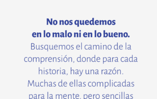 No nos quedemos en lo malo ni en lo bueno. Busquemos el camino de la comprensión, donde para cada historia, hay una razón. Muchas de ellas complicadas para la mente, pero sencillas para el corazón que es compasivo.