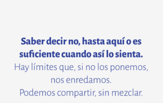 Saber decir no, hasta aquí o es suficiente cuando así lo sienta. Hay límites que, si no los ponemos, nos enredamos. Podemos compartir, sin mezclar.