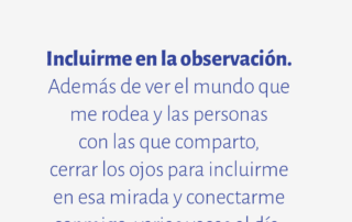 Incluirme en la observación. Además de ver el mundo que me rodea y las personas con las que comparto, cerrar los ojos para incluirme en esa mirada y conectarme conmigo, varias veces al día.